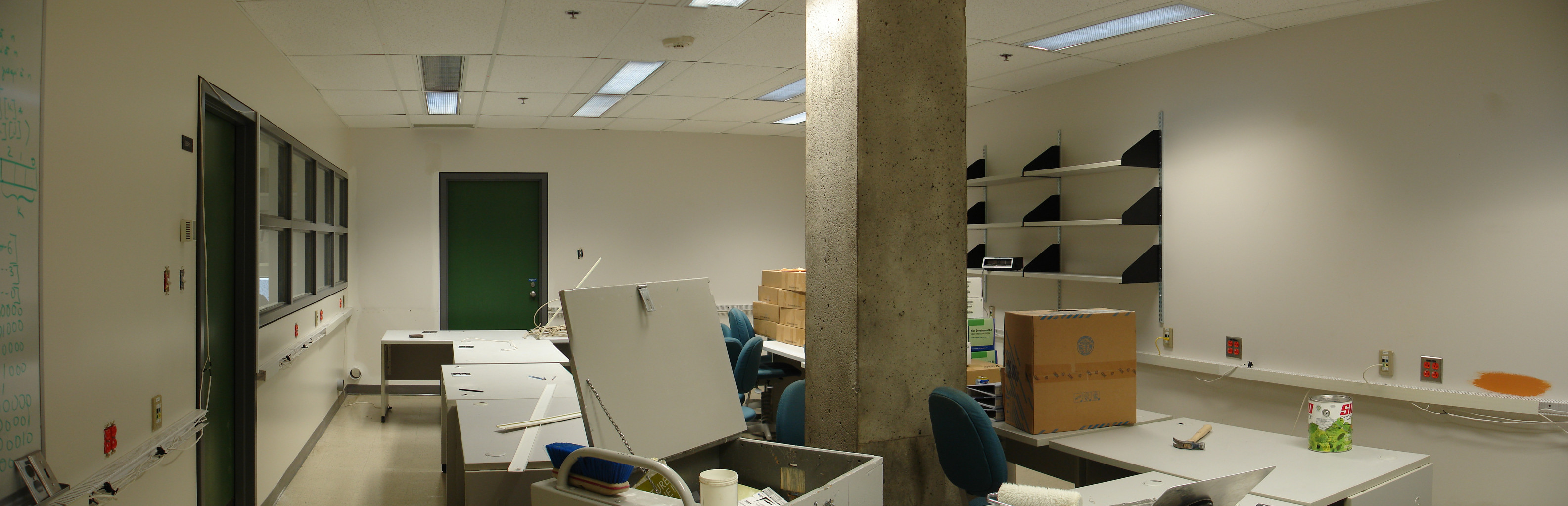 Ci-dessous une photo du laboratoire peint, mais pas encore complètement meublé: