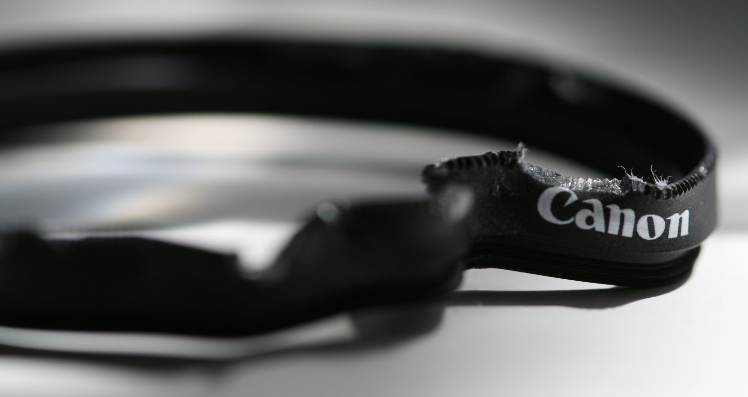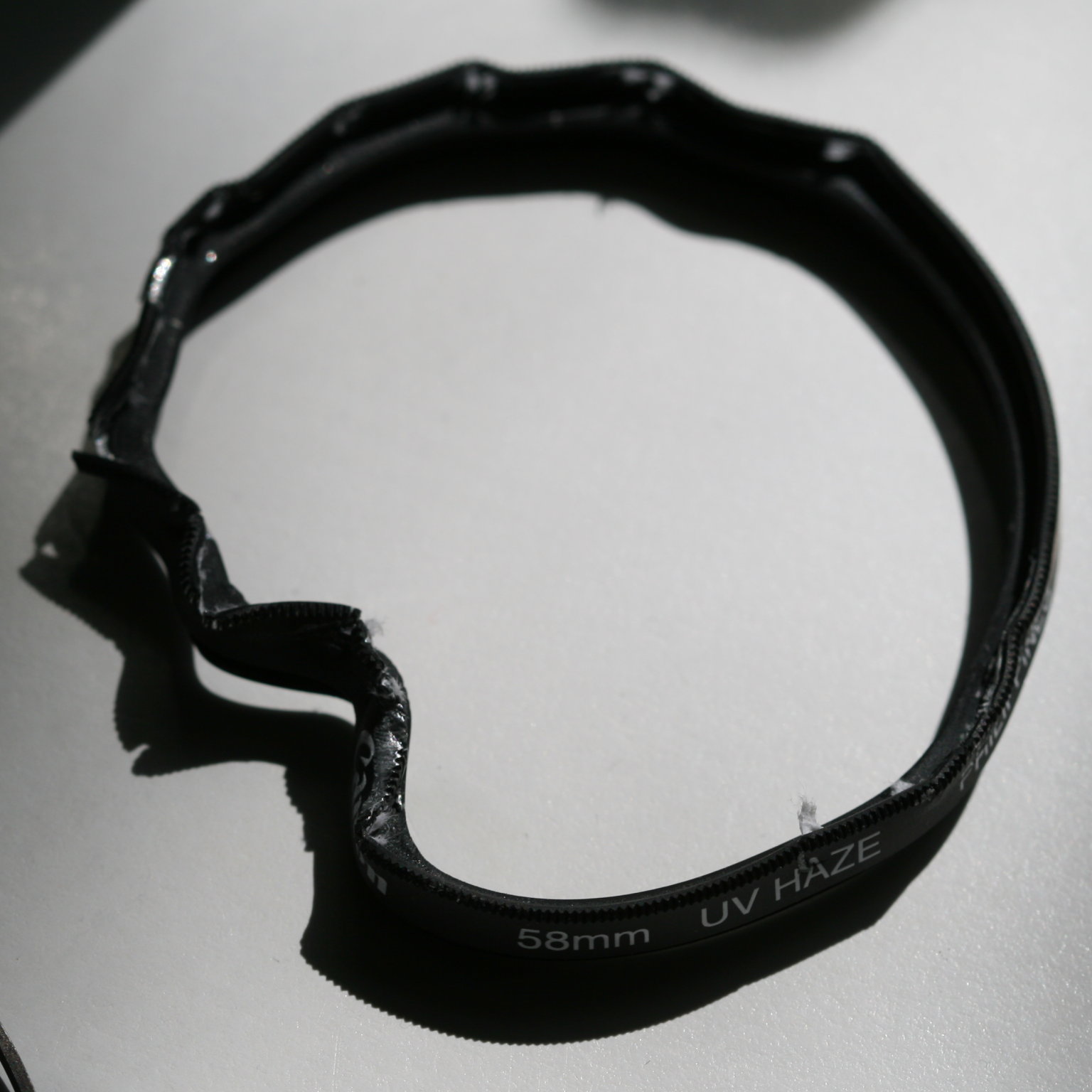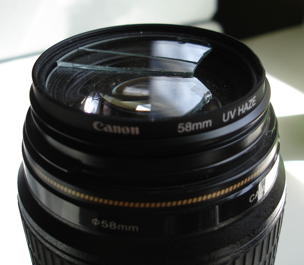 After removing the pieces of broken glass, carefully bending the filter with pliers was only a matter of minutes: