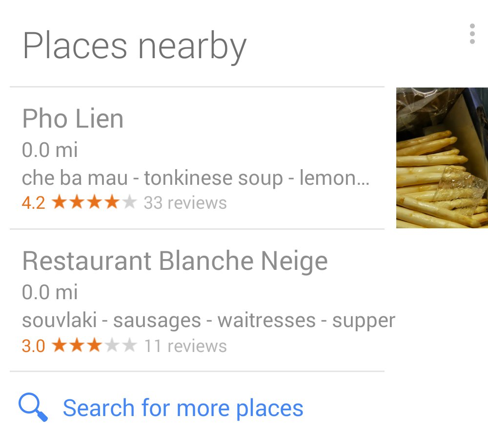 Voici ce que Google Now me recommande à Côte-des-Neiges :