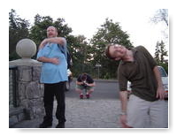 Jim giving Reddy his «angry duck» tee